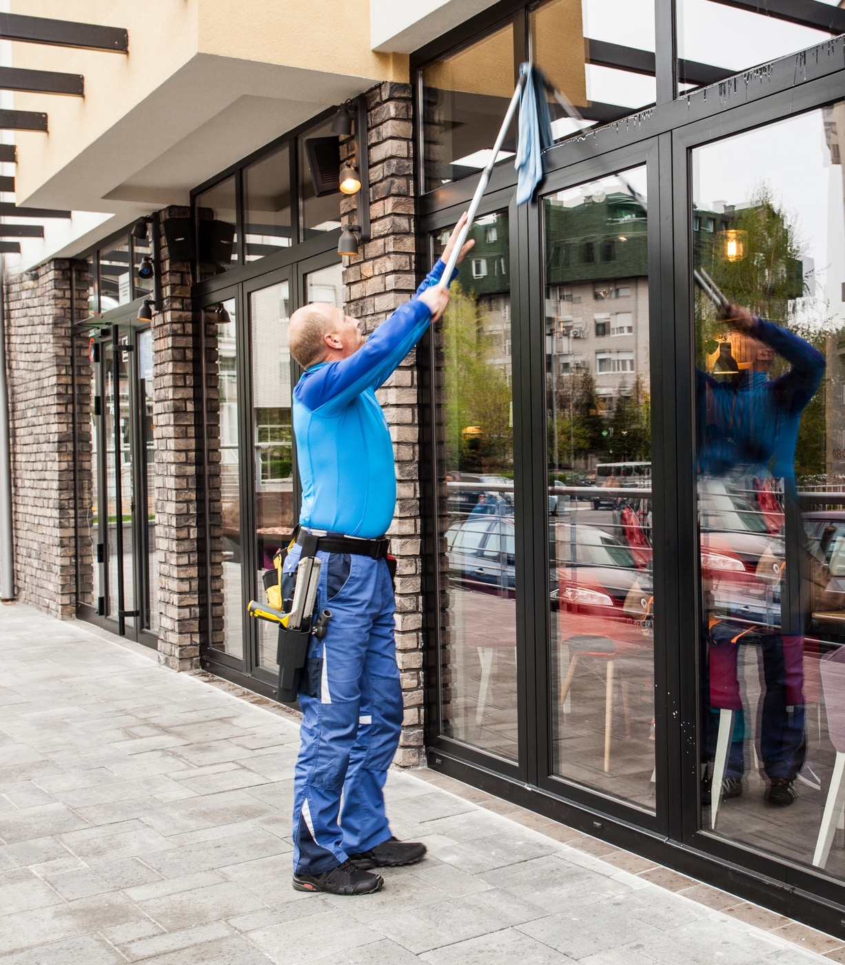 Ja, wir verfügen über die nötige Ausrüstung, um selbst schwer erreichbare Glasflächen professionell zu reinigen.